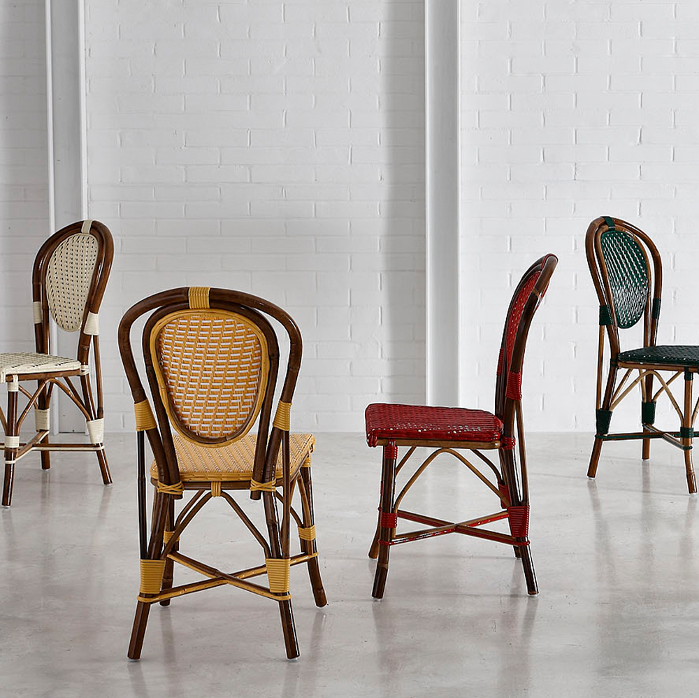 Möblerna från Casa Bistro handflätas i Italien på klassiskt manér. Möbelns stomme består av oskalad malaccarotting som varmböjs. Rottingen som har sin naturligt skiftande bruna färg klarlackas sedan. Det finns en mängd olika mönster som kan fås i de färgkombinationer man önskar.