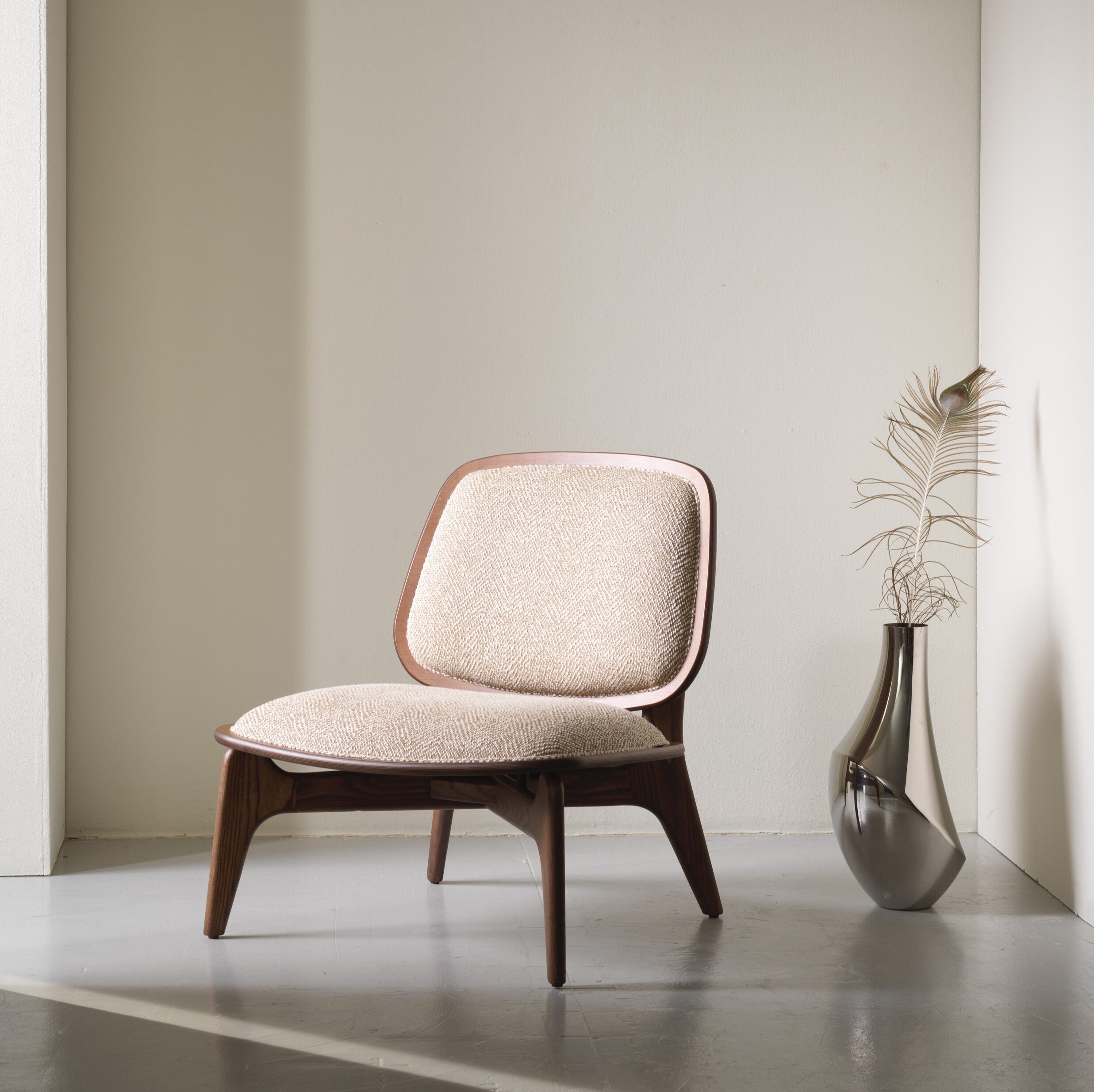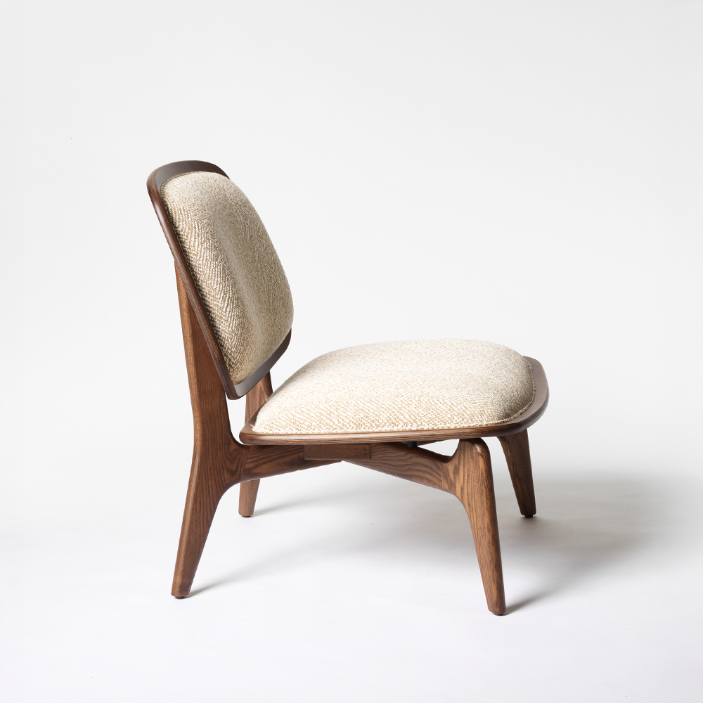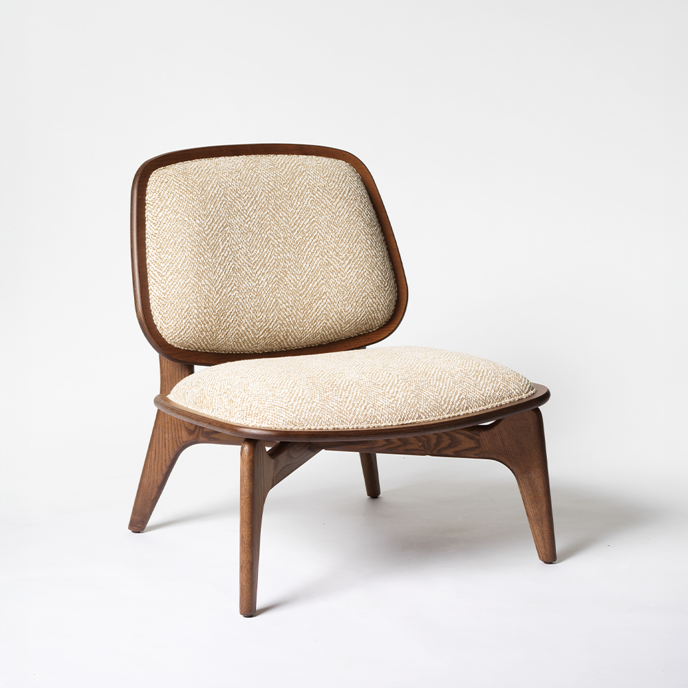 Enzo är en loungestol i ask med klädd, rundad sits och geometrisk rygg, som kombinerar skandinavisk design med hög komfort. En lite mindre variant av fåtöljen Nord, men med samma komfort.