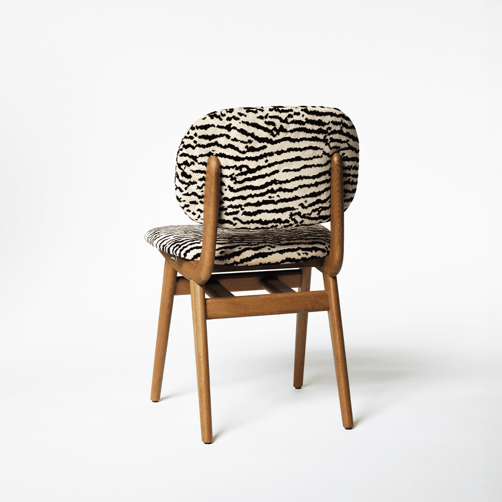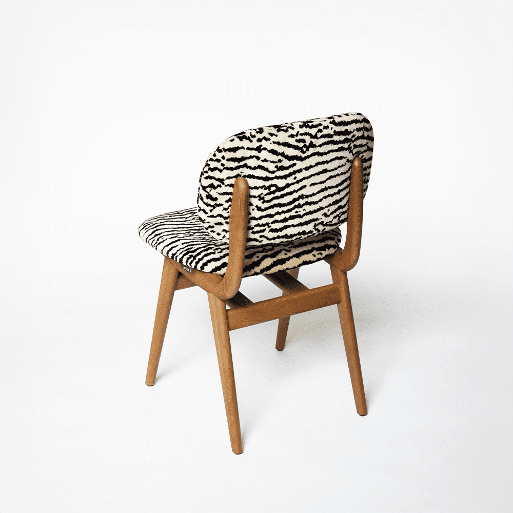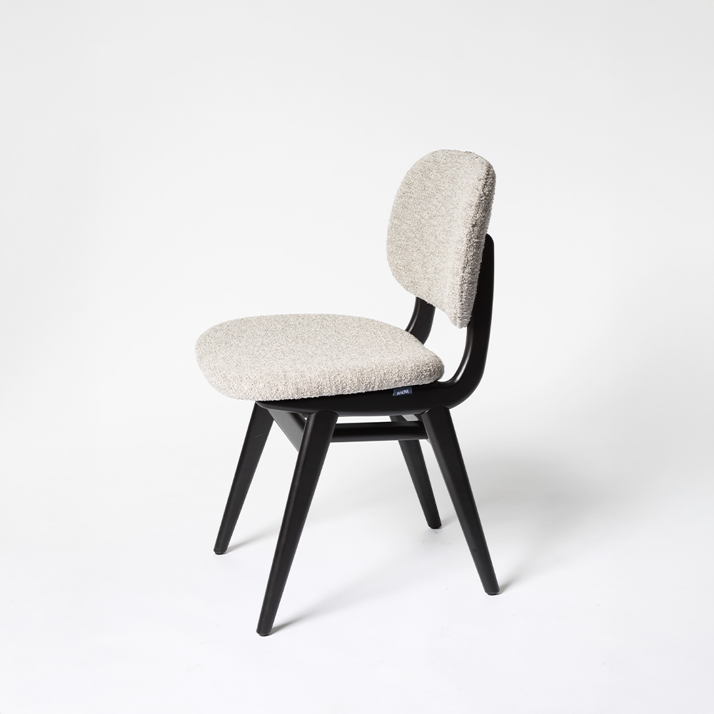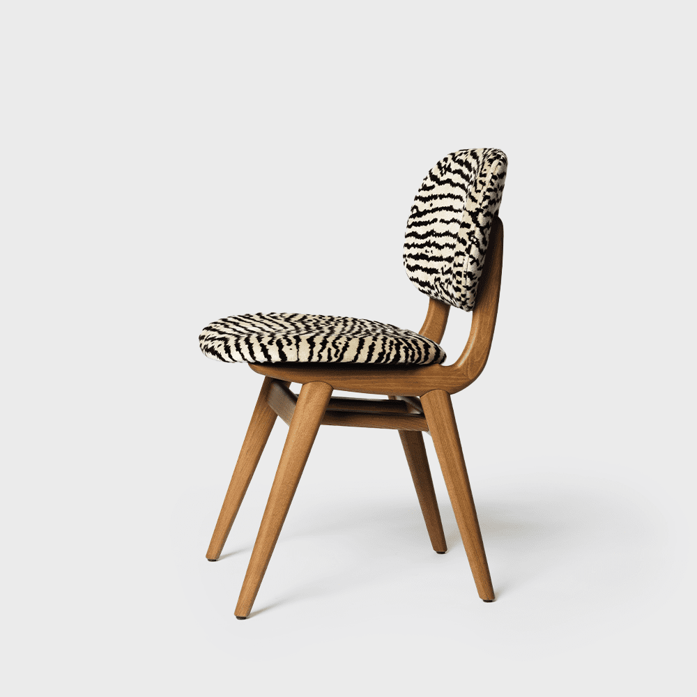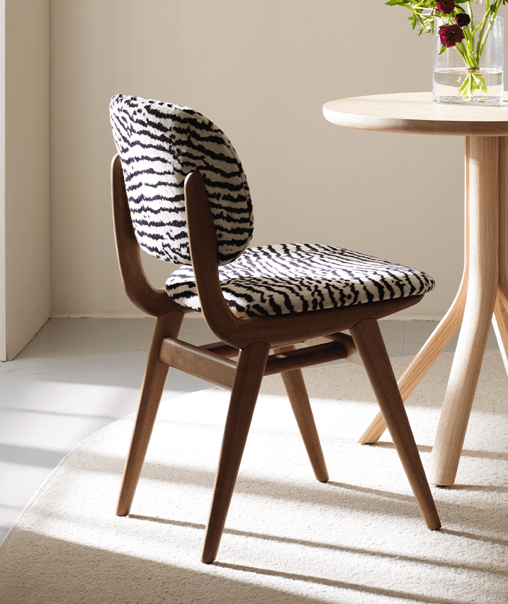 Vacker stol i trä med klädd sits och rygg. Det lätt kurvade ryggstödet ger mycket bra komfort.