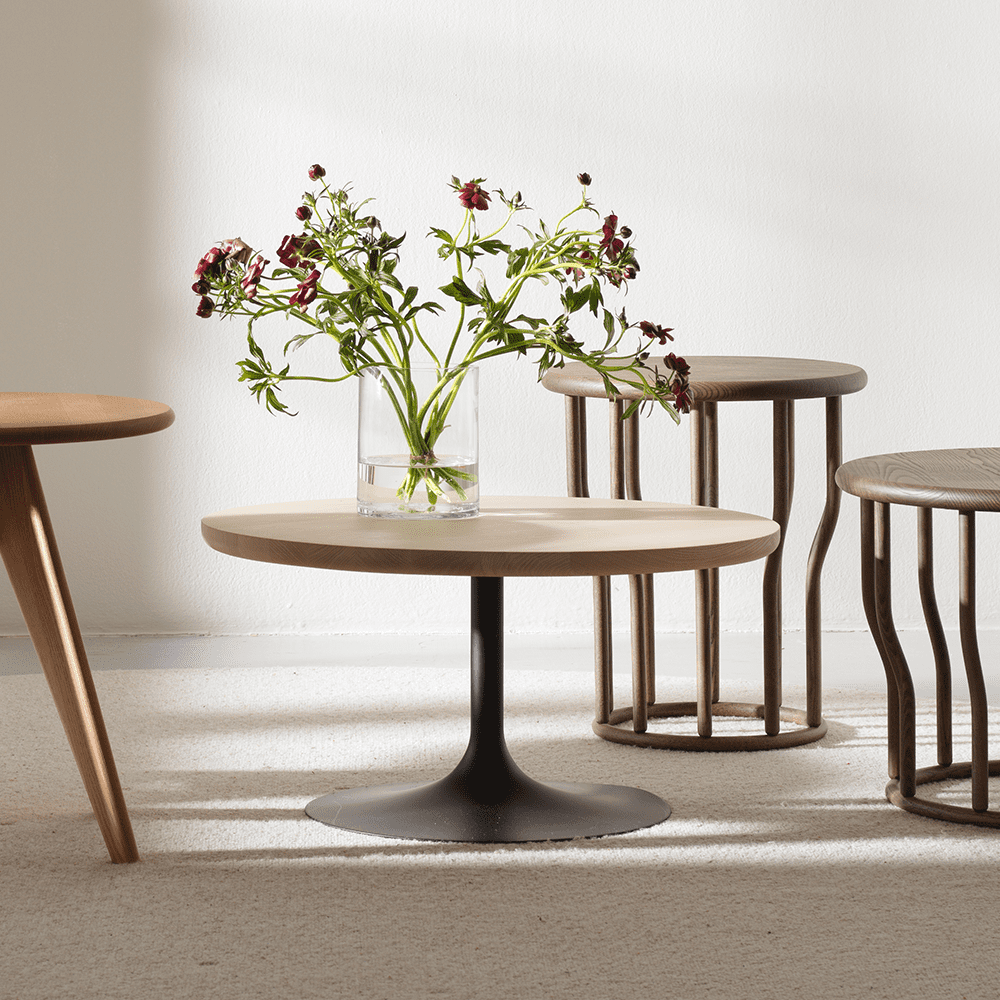 Novel är ett komplett litet bord med trumpetformat bordsstativ i metall kombinerat med bordsskiva i ask. Använd som soffbord eller sidobord. Stativ i svart (RAL 9005) eller vit (RAL 9016) som standard. Andra RAL-kulörer på förfrågan. Bordet Novel finns i höjd 35cm och 45cm som standard. Bordsskiva Ø60cm samt Ø70cm som standard. Andra mått på förfrågan.